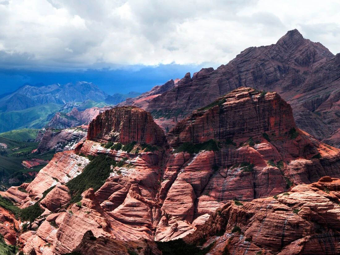 新龙红山景区是国 内涉藏地区发现海拔最 高、区域最 广的丹霞地貌景区。其丹霞地貌核心区域长约18公里,整体海拔在4200米-5000米之间,拥有10余座超过5000米的山峰,红色山体与周边墨绿色地貌形成强烈视觉对比,气势雄浑如万马奔腾。